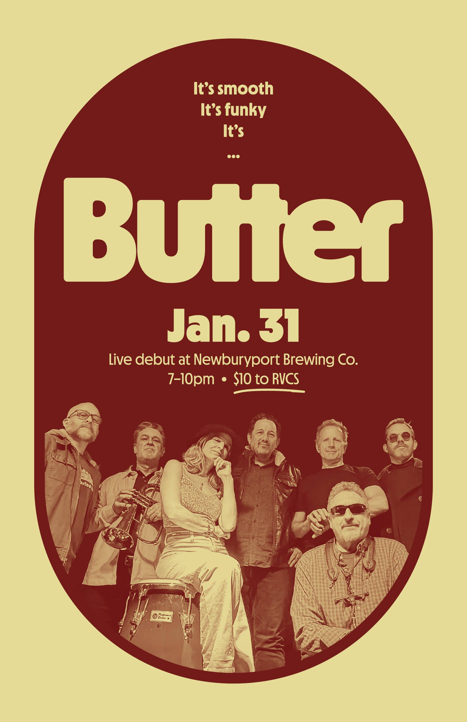Butter is a seven-piece party band from Newburyport, Massachusetts, playing a carefully curated batch of old and new funk and soul covers. Guaranteed to get people dancing and having a good time